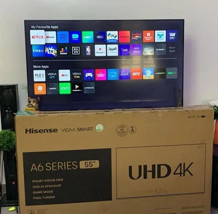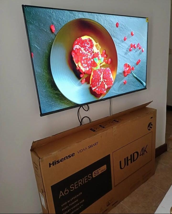 2 month used 55 inches Hisense frameless smart tv with remote, carton and accessories