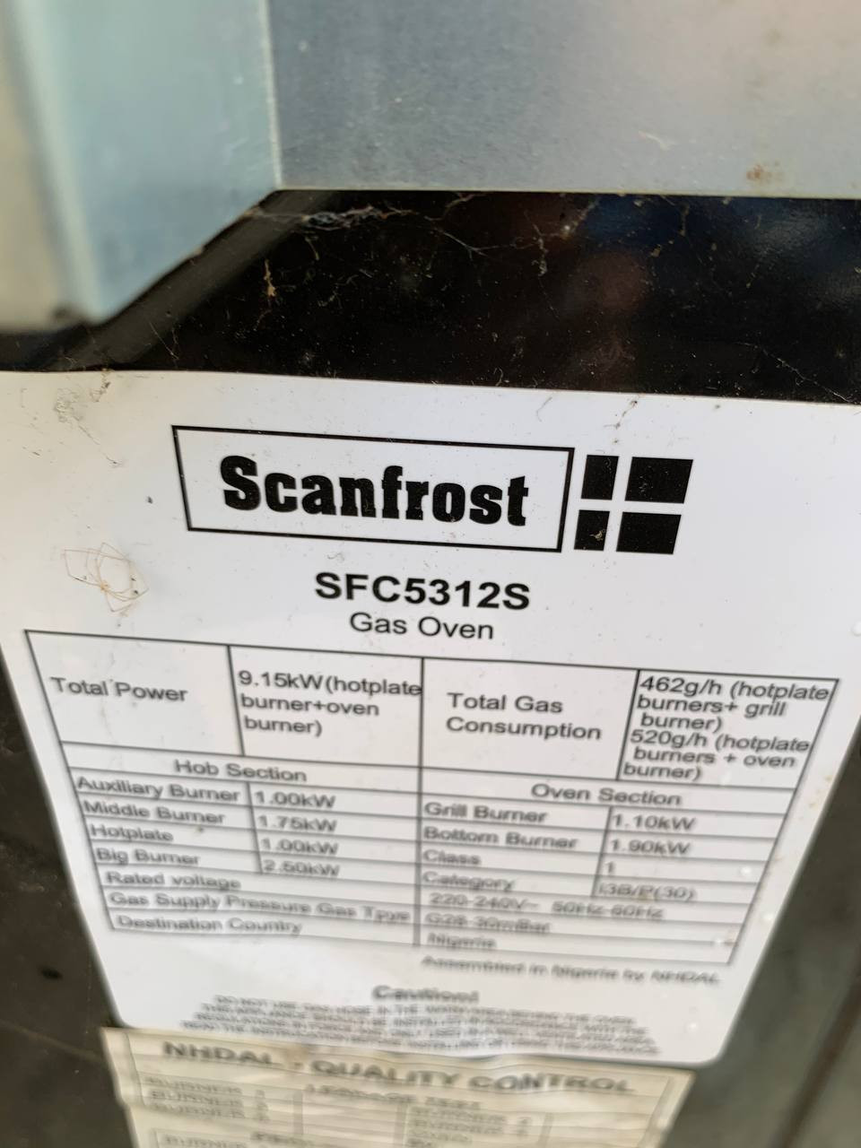 Clean Scanfrost 50X50 3 Gas Burners 1 Hot Plate With Gas Oven, Grill, Ignition Grey | SFC5312S For-Sale
