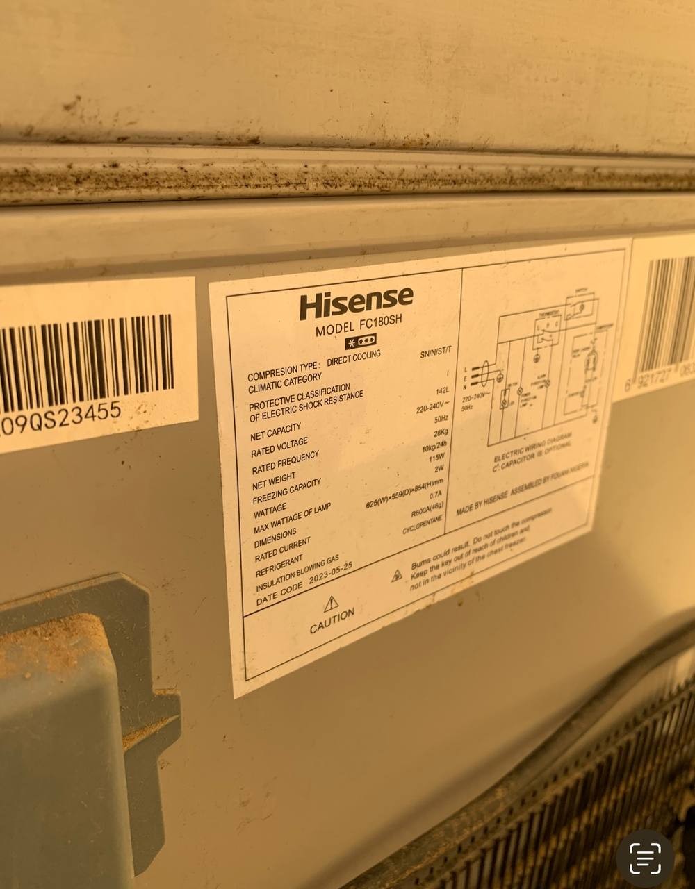 ❌❌SOLD-OUT❌❌..V.Clean 142L Hisense FC-180SH Chest Freezer For-Sale