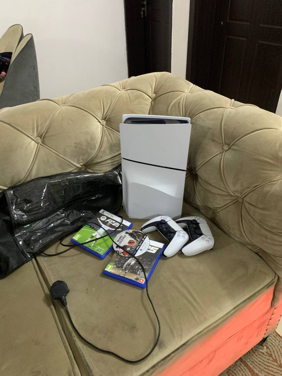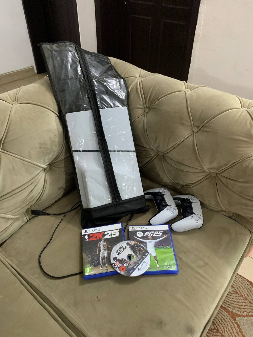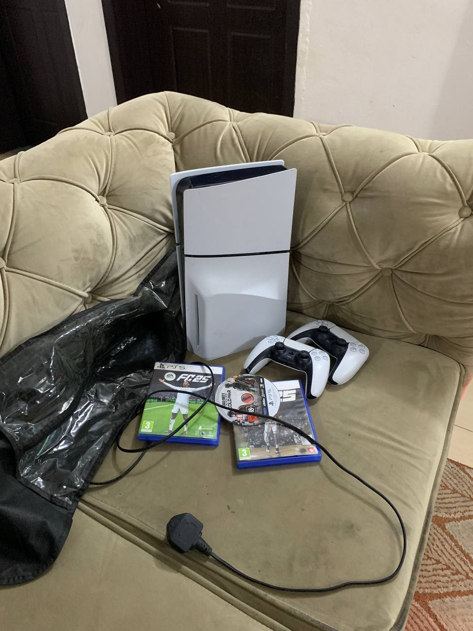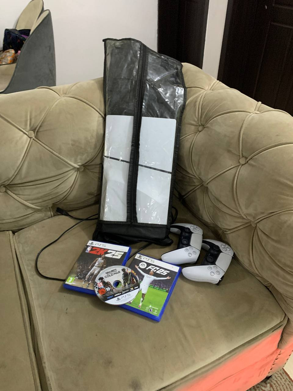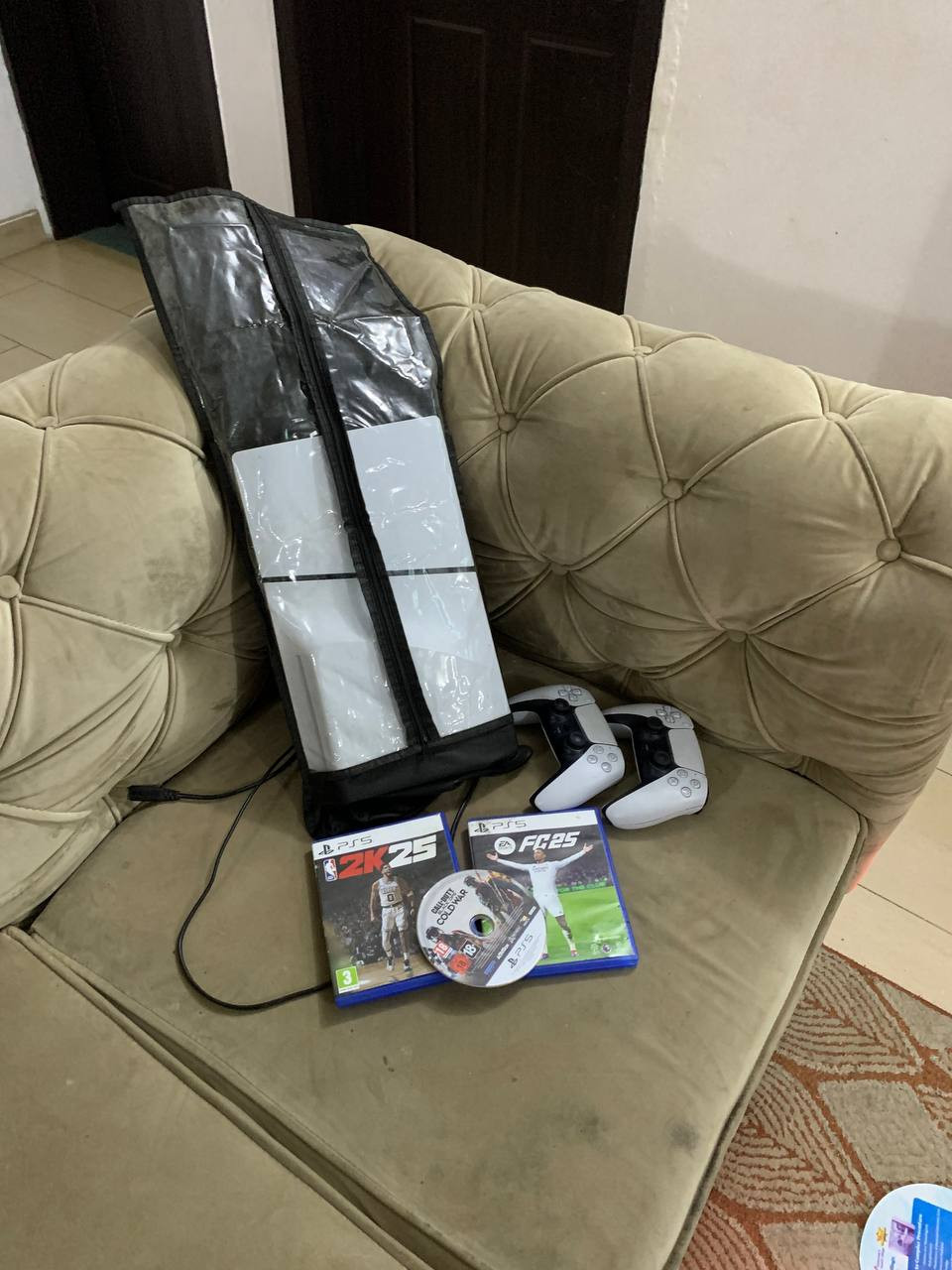 V.Clean, 1Tb, Slim PlayStation 5 With 3 Different Cd Game like (FC25,2K25, Call Of Duty), 2Controller For-sale