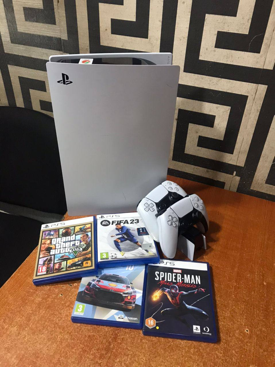 ❌❌SOLD-OUT❌❌ V.Clean PlayStation 5 With 4 different CDs, (FIFA 23, GTA, SpiderMan, WRC 10), 2 cControllers, and Controller Charger For-Sale