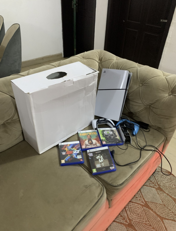 V.Clean Slim PlayStation 5 With 2Pad, Controller Charger and Different 4 Cd Games For-Sale